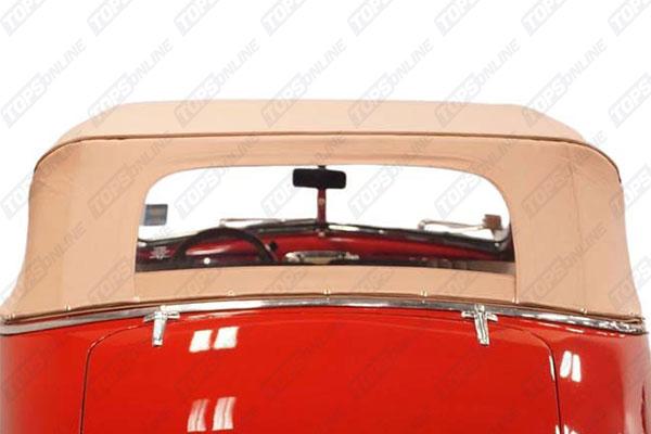 Factory style 2-Piece Top with Side Zippers Plastic Window. Included with the Top, Wire-On trim & Chrome ends to hide the Staples above rear window bow, below rear window bow & above windshield bow. We offer Original Haartz Stayfast Cloth material. Other colors can be ordered, please inquire. These Tops are made with matching color binding (edging) & stitching. Custom-made tops with different color binding & stitching can be made, please inquire.