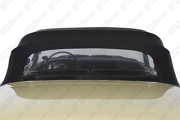 Factory style 2-Piece Top with Horse-Shoe style Zipper Plastic Window. Included with the Top, Wire-On trim & Chrome ends to hide the Staples above rear window bow. We offer Haartz Pinpoint Vinyl & Haartz Stayfast and Twillfast Cloth materials. Other colors can be ordered, please inquire.
