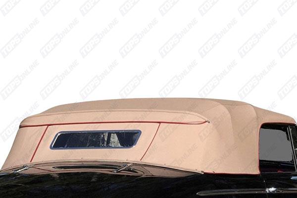 Factory Style Top with Double Thick layer Horse-Shoe style Zipper Rear Window Blank Curtain. New Glass Window not included with the Top, you can RE-Use your own Glass or buy it separately. Included with the Top, Wire-On trim & Chrome ends to hide the Staples above rear window bow, below rear window bow & above windshield bow. We offer Haartz Pinpoint Vinyl & Haartz Stayfast Cloth materials. Other colors can be ordered, please inquire. These Tops are made with matching color binding (edging) & stitching. Custom-made tops with different color binding & stitching can be made, please inquire.