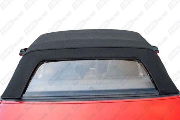 Factory style replacement Convertible Top cover fits into existing Glass window. Made with Original style Padded rear section & Partitioned Cable Sleeve. Included with the Top, four Escutcheons with threaded Shanks and Nuts (covered in matching Topping material), Side Tension Cables and Rear Bracket Cables. Factory Convertible Top material is the Haartz Twillfast Cloth, we also offer Haartz Stayfast Cloth. Other colors can be ordered, please inquire.