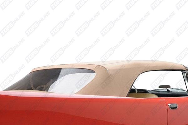 Factory Style 2-piece Convertible Top With Horse-Shoe style Zipper Plastic Window. Top and Window have installation alignment marks. Included with the convertible top: Wire-On trim & Chrome ends to hide the staples above the rear window bow. We offer Haartz Pinpoint Vinyl & Haartz Stayfast Cloth materials. Other colors can be ordered, please inquire.