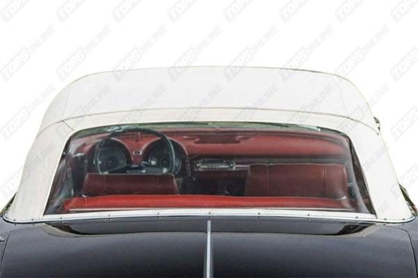 Factory Style 2-piece Convertible Top With with Zipper Plastic Window. Included with the convertible top: Wire-On trim & Chrome ends to hide the staples above the rear window bow. Other colors can be ordered, please inquire.