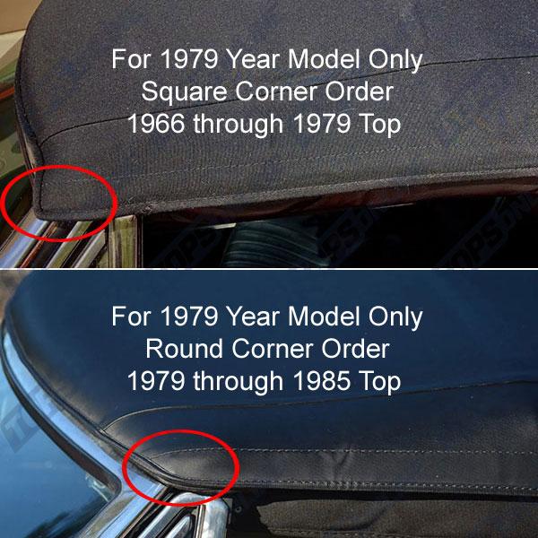 Factory style Convertible Top with Plastic Window. Convertible Top will fit cars with VIN # that starts 124CS0, 124CS2 and 124DS0. For 1979 model year only, Please click on Yellow 1979 Top pictures tab & order accordingly.