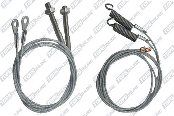 Plastic coated Steel side Tension Cables, side Tension Cables are threaded into pocketed hems on the Top that run along the side windows. The ends of the Cables hold the top to the frame. You can re-use your existing Top Cables if they are in good shape. Side Tension Cables sold as a set, buy one order per car.