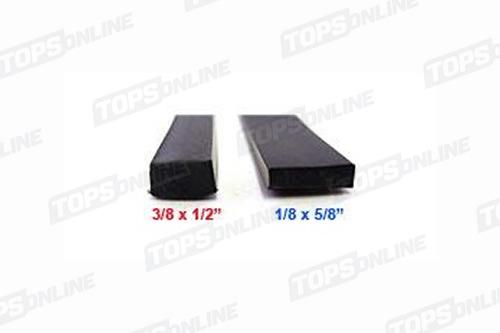 Rear style tacking strip dimensions are 3/8 x 1/2 inches.