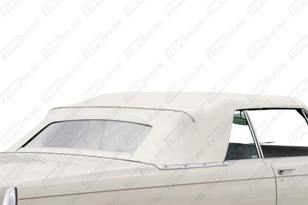 Factory Style 2-piece Convertible Top With with Non-Original Zipper Plastic Window. Included with the convertible top: Wire-On trim & Chrome ends to hide the staples above the rear window bow. Factory Original material is the Haartz Crush Vinyl. We also offer Haartz Pinpoint Vinyl & Haartz Stayfast Cloth material. Other colors can be ordered, please inquire.