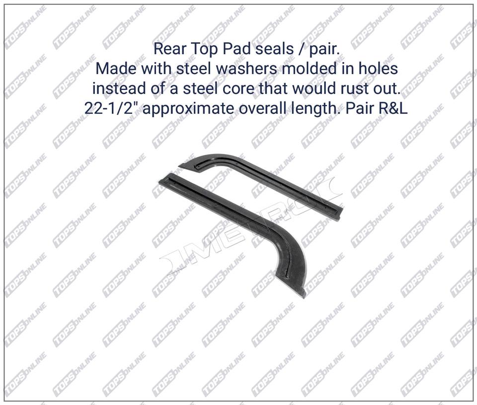 Rear Top Pad Seals for Convertibles. Made with steel washers molded in holes instead of a steel core that would rust out. 22-1/2" approximate overall length. Pair R&L
