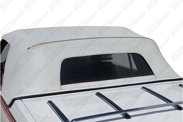 Factory style 2-Piece Convertible Top with Non-Original Plastic Window. Included with the Top above rear window Wire-on Trim with 2 Chrome ends. We offer Haartz Pinpoint Vinyl & Haartz Stayfast Cloth materials. Other colors can be ordered, please inquire.