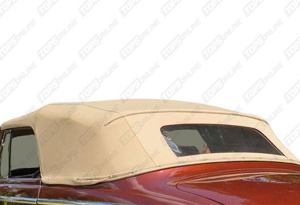 Factory Style 2-piece Convertible Top With Horse-Shoe style Zipper Plastic Window. Included with the convertible top: Wire-On trim & Chrome ends to hide the Staples above & below rear window Bow, also, above windshield Bow. We offer Haartz Pinpoint Vinyl & Haartz Stayfast Cloth materials. These Tops are made with matching color binding (edging) & stitching. Custom-made tops are available as well: if you would like other colors and materials for the top, binding, and stitching, please inquire.