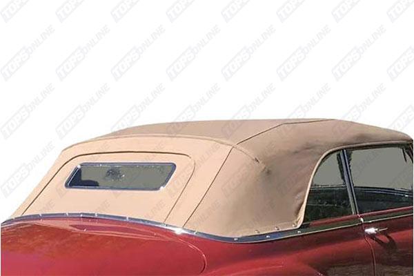 Factory Style Top with Double Thick layer Horse-Shoe style Zipper Rear Window Blank Curtain. New Glass Window not included with the Top, you can RE-Use your own Glass or buy it separately. Included with the Top, Wire-On trim & Chrome ends to hide the Staples above rear window bow & above windshield bow. Top is made with Adjustable hidden snaps on the side quarters. We offer Haartz Pinpoint Vinyl & Haartz Stayfast Cloth materials. Other colors can be ordered, please inquire. These Tops are made with matching color binding (edging) & stitching. Custom-made tops with different color binding & stitching can be made, please inquire.