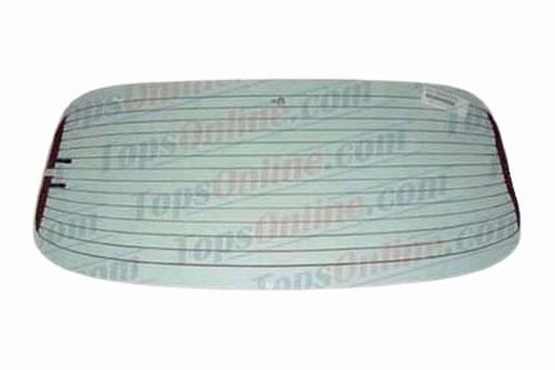 The rear glass is a DOT‑rated heated glass with embedded defroster wiring, securely bonded for long-term durability. There is no exposed stitching or piping around the glass edge, providing a clean, factory-quality appearance and strong adhesive bond.