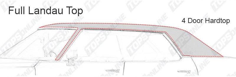 Landau Top Details: Made with two heat-sealed seams (one seam along each side), includes A-Pillar Vinyl & below rear window Valance Vinyl as original. Material Note: We offer this Top with Fuzzy backed Vinyl and without Fuzzy backed Vinyl materials.