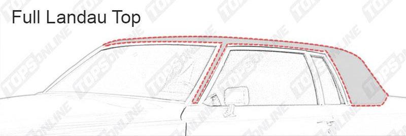 Landau Top Details: Made with one seam on the Deck, includes A Pillar Vinyl & below rear window Valance Vinyl as original. Material Note: These vinyl tops are made with Haartz fuzzy backed vinyl Top material.