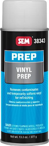 SEM Vinyl Prep is available in a 16 oz Aerosol Can, net weight 13.3 oz., and covers approximately 12 square feet
