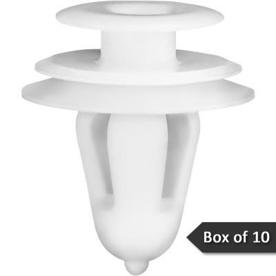 This is a box of 10 door trim panel & back panel garnish retainers. Useful for a variety of applications, this product is OE for Toyota Trucks (1998-present). It matches Toyota OE Part Number 67771-16080. Although this retainer is OE for Toyota vehicles, it is universal and can be used on any vehicle or application requiring this type of retainer and meeting these specifications.