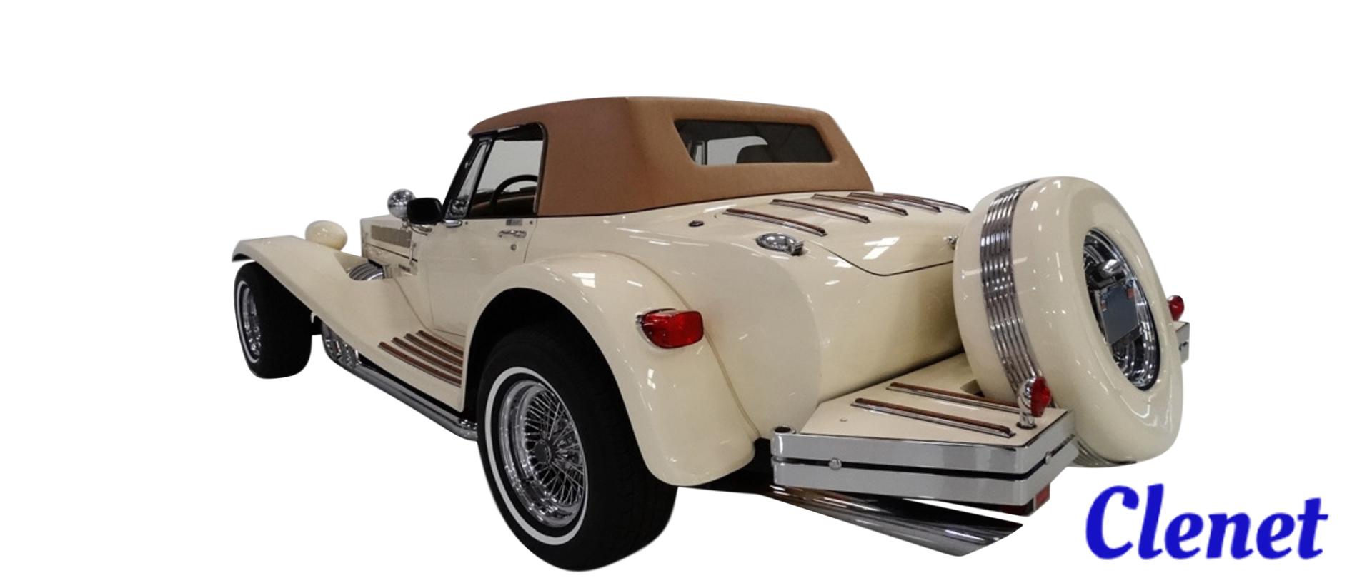 Out of all the experimental automobile lines produced over the years, the Clenet roadster stands as one of the more quirky ventures. The Clenet roadster convertible top was produced in the mid 1970s, combining modern parts and drivetrain with vintage 1930s styling. Considered perhaps too bizarre by some at the time, Clenet soft top fanciers have had the last laugh, as this oddball car has soared in value in recent years. Replacement Clenet convertible tops are as valuable to the Clenet roadster's appeal as the car's legendary burled walnut dashboard and Waterford crystal ashtray.
