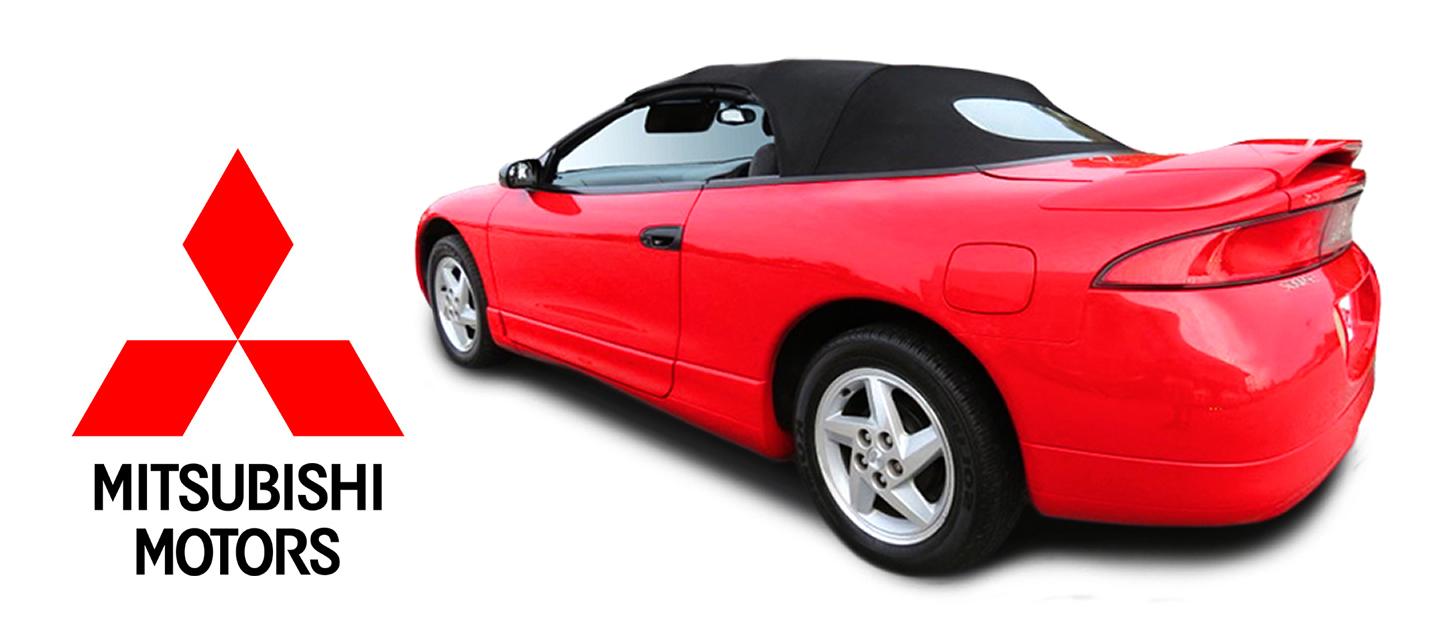 Shop TopsOnline for Mitsubishi Eclipse Spyder soft tops and all the accessories you need. We have original patterns and materials for Eclipse Spyder tops that look great and are at great prices. Mitsubishi Eclipse Spyder convertible tops are available in original Haartz Stayfast Cloth. Black Eclipse Spyder tops are popular with Tan coming in second. Later model Eclipse Spyder tops are available in Medium Grey also, which looks great installed. All Eclipse Spyder soft tops come with original stitched seams and rain guards above the windows.